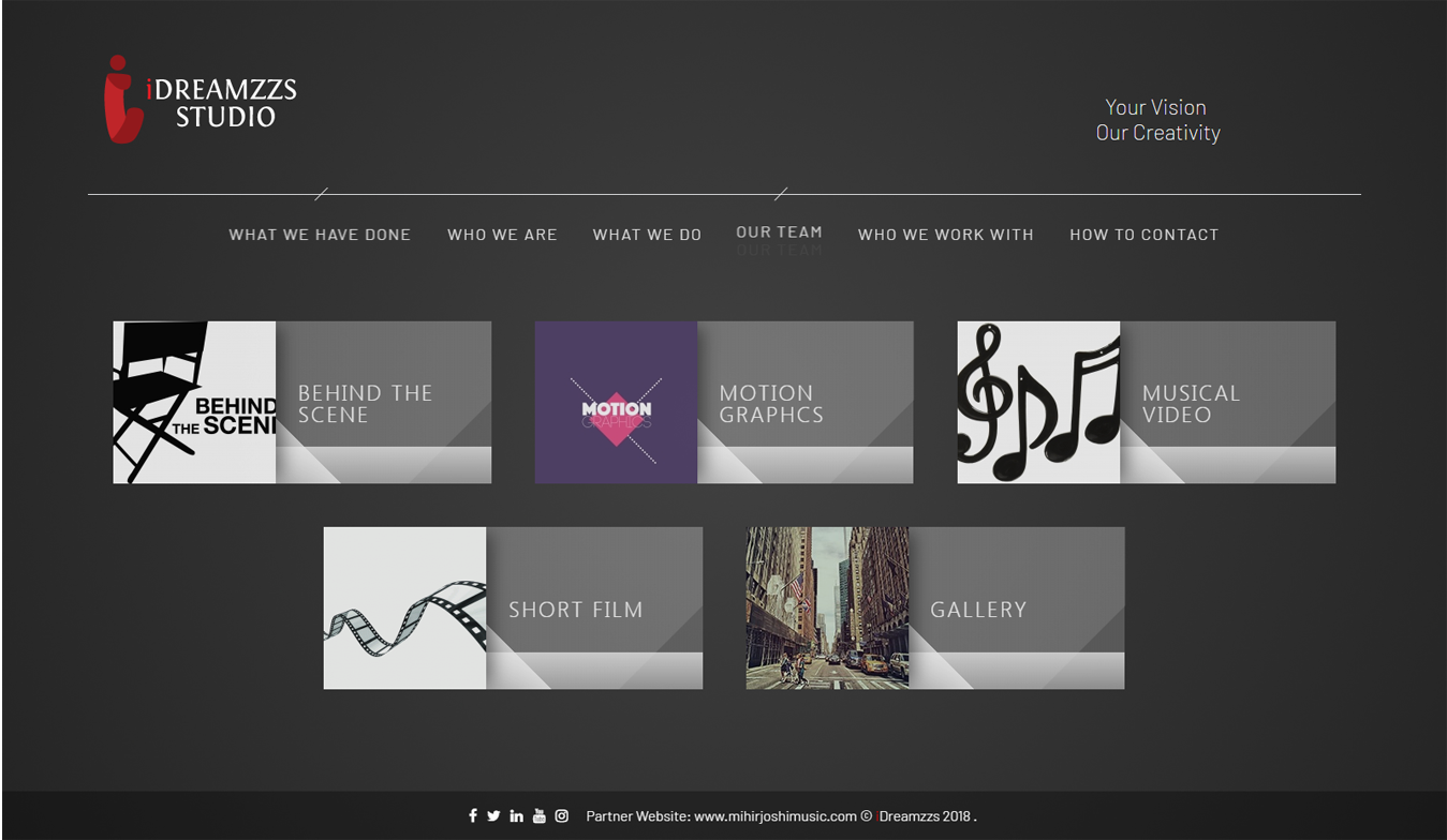 Idreamzzs Studio is a video Production company based in Mumbai.Idreamzzs Studio is into Audio & Video Editing with VFX, Branding, Musical Videos, Corporate Video, Wedding Films, Graphic Designing,Logo Designing, Web 2.0 Designing, Web Application Development, E–learning solutions, Multimedia Content Development, 2D & 3D Animation.