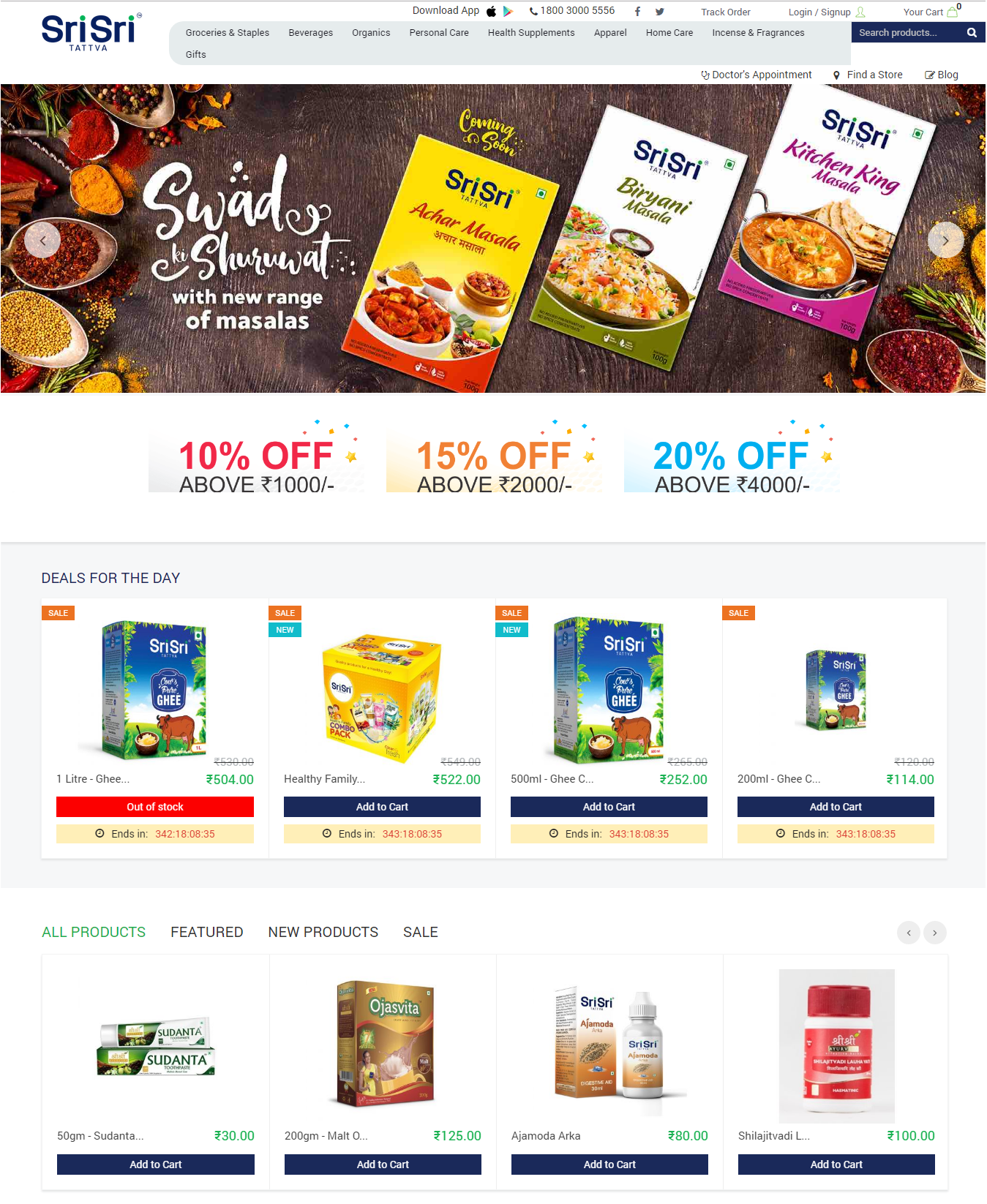 An online shopping portal along with mobile application for sri sri tattva, a branch of The ART of LIVING foundation is into manufactuting of FMCG products.